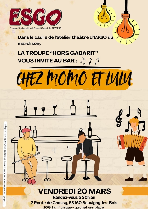 La troupe de théatre "Hors Gabarit" présentera une pièce "Chez Momo et Lulu" de l'ESGO de nevers.